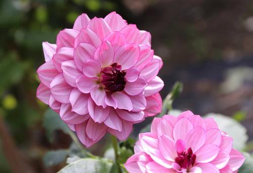 Dahlias bloom best when they are planted in full sun and fertile, well-drained soil. Border dahlias can be planted 15” apart from center to center; standard types are usually spaced about 18” from center to center.