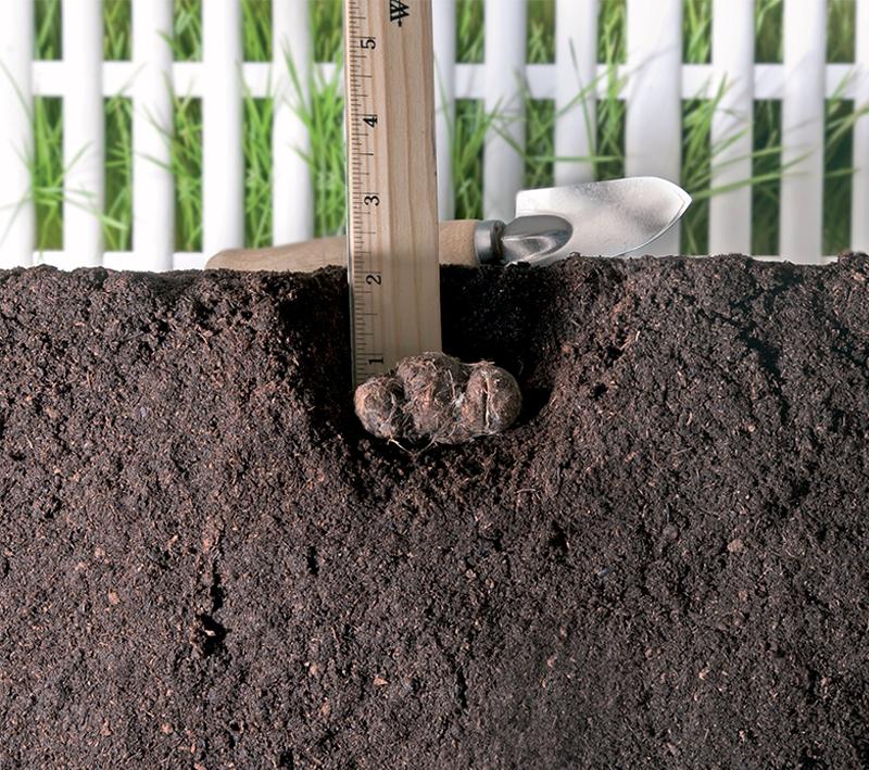 Plant tubers (smooth side down) approximately 3" deep. After planting there should be 1-2" of soil on top of the tuber.