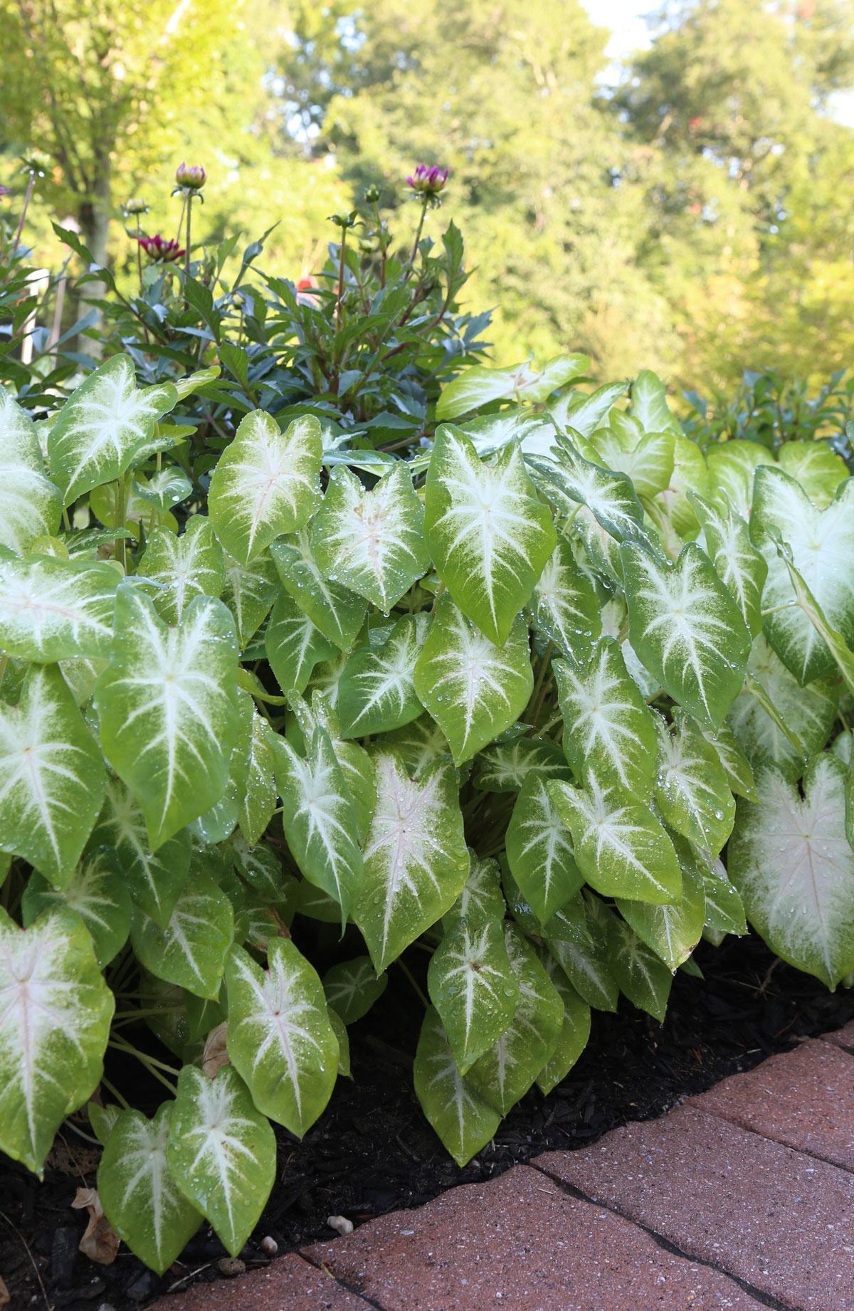 ENTRYWAYS AND BORDERS: Use fancy leaf caladiums to soften a walkway to your front door, edge a shady garden bed or line a path beneath shade trees and shrubs.