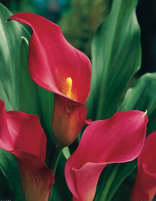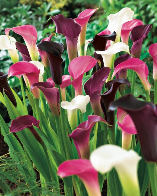 Calla lilies are easy to grow and add a classy look to perennial gardens, cutting gardens and container plantings. Their distinctive flowers come in many beautiful colors, including classic white (a favorite for weddings), yellow, orange, pink, rose, lavender and dark maroon.