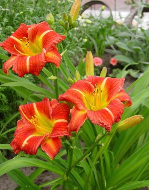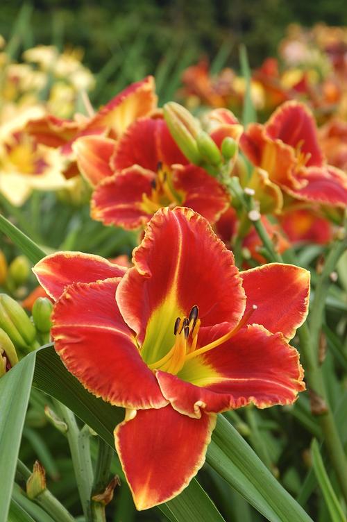 A daylily's strappy foliage complements ornamental grasses, asters, echinacea and other plants that have an informal or "natural" growth habit.