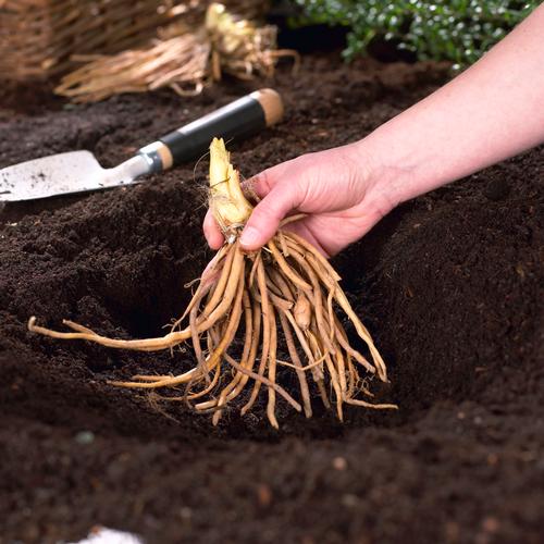 Cover the roots with soil and water well.