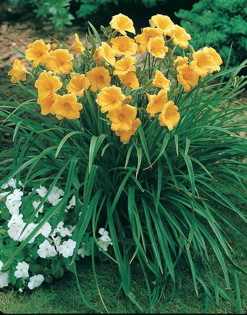 Daylilies are ideal for creating a no-maintenance border along a fence, beside a walk or driveway or against an outbuilding. They’ll soften hard lines and reduce the chore of mowing and trimming.