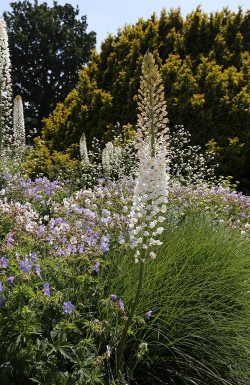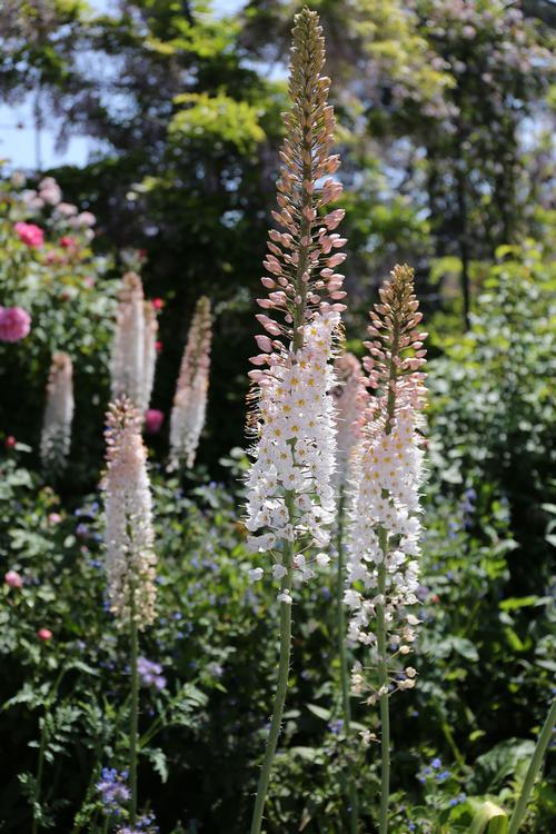 Choose a warm location where the plants will get full sun and the tall flowers will be protected from strong winds. Keep in mind that the roots of eremurus are shallow and they don't like being crowded or forced to compete with neighboring plants. Once midsummer arrives and the eremurus are dormant, it’s fine for other perennials to overshadow them.