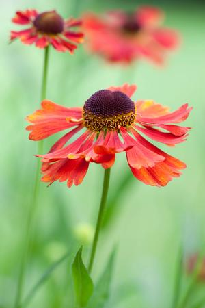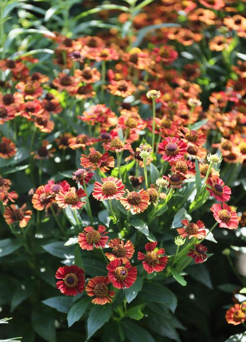 Heleniums are colorful, easy-to-grow perennials that flower in late summer. Their daisy-like blossoms measure 1 to 2” across and have prominent button-like centers. The flowers bloom in warm, autumnal colors such as brick red, golden yellow, coppery gold and rusty orange.
