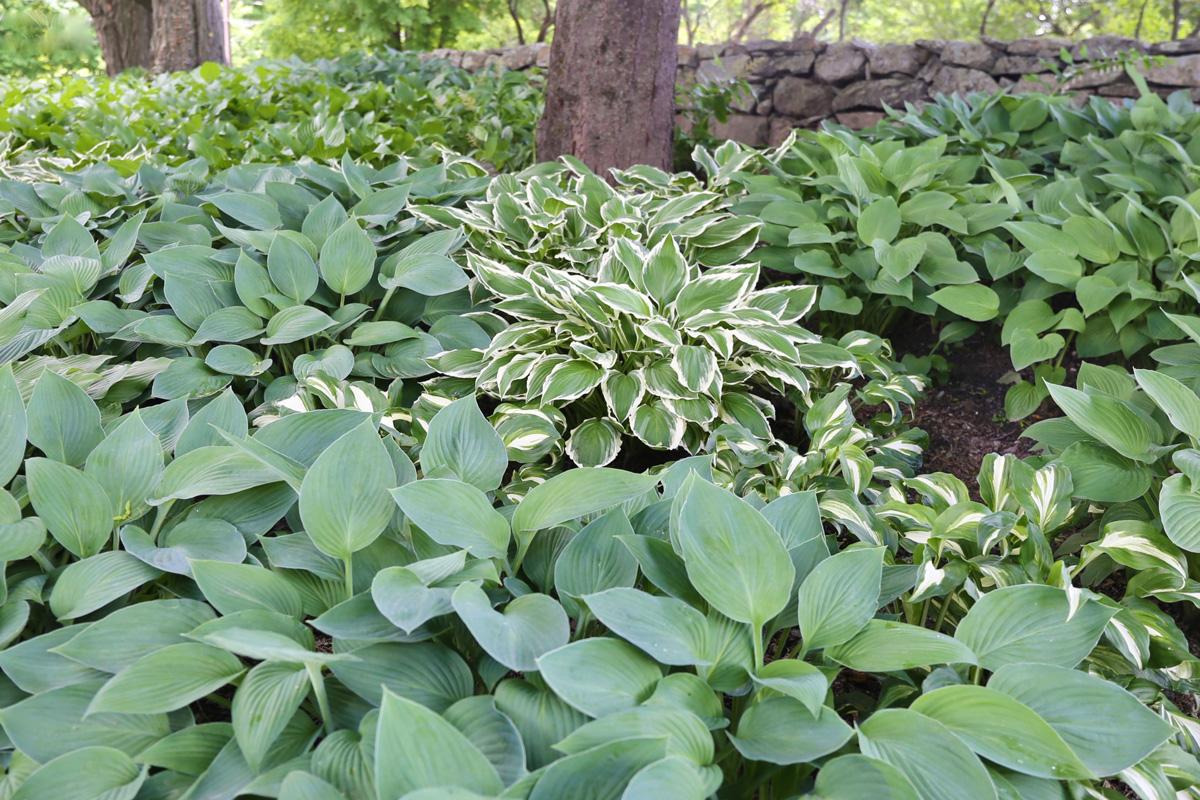 Planting an assortment of hostas is a beautiful way to line a woodland path. Leaf color ranges from dark green to steely blue, chartreuse and creamy white. Many cultivars have variegated foliage that displays two or even three different color combinations.
