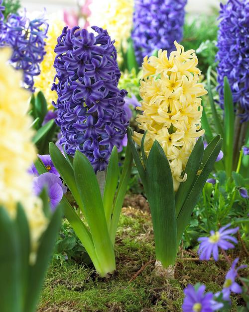 Flower Beds and Walkways: Planting hyacinths near a doorway or along a walkway will let you enjoy their fragrance every time you pass by. For a knockout display of early spring color, mix and match hyacinths with daffodils, emperor tulips, early double tulips and muscari.