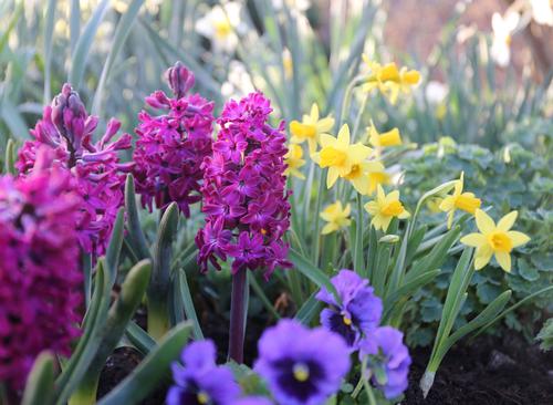 Perennial Gardens: Hyacinths bloom when most gardens are still waking up. Planting groups of hyacinth bulbs at the front of a perennial garden will provide a welcome burst of color and give you an early start on the season.