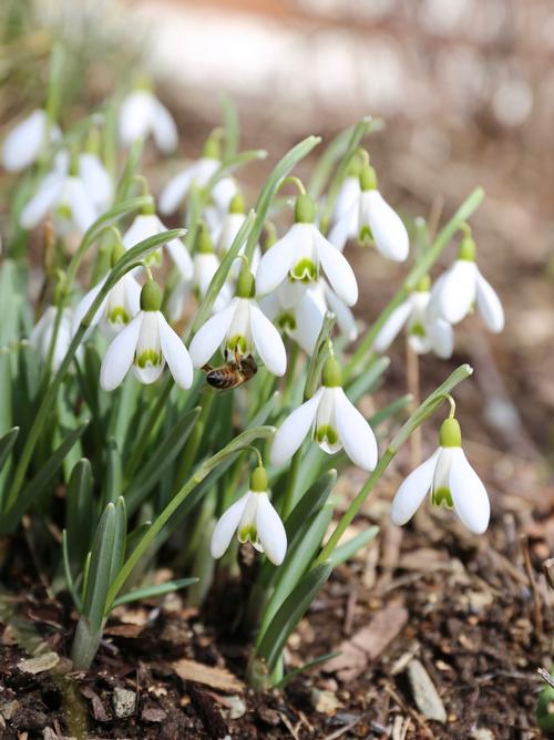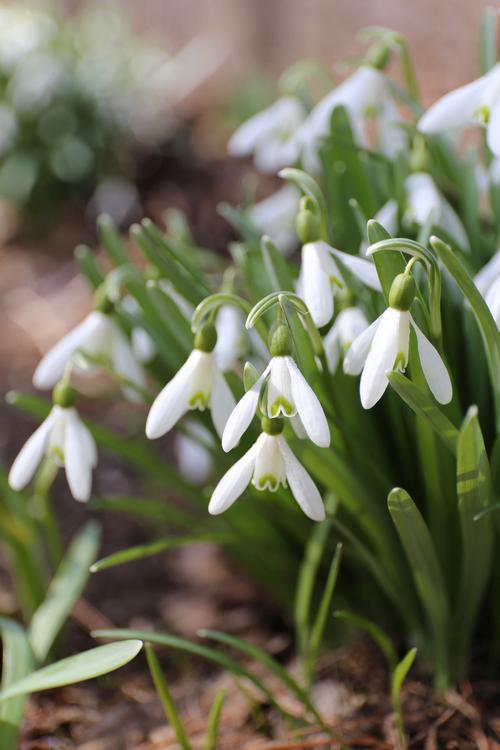 Snowdrops are often combined with other early-flowering bulbs such as crocus, winter aconite, chionodoxa and scilla siberica. All of these bulbs are good naturalizers and will bloom year after year with little or no attention.