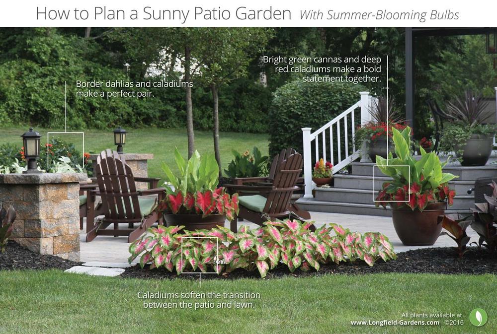 Summer-blooming bulbs make it easy to turn a sunny patio into a showplace. Flowers and colorful foliage add a neat, professional look to your home and create outdoor rooms that feel intimate and inviting. Summer entertaining is more fun when you feel as proud of your patio as you do of your home.