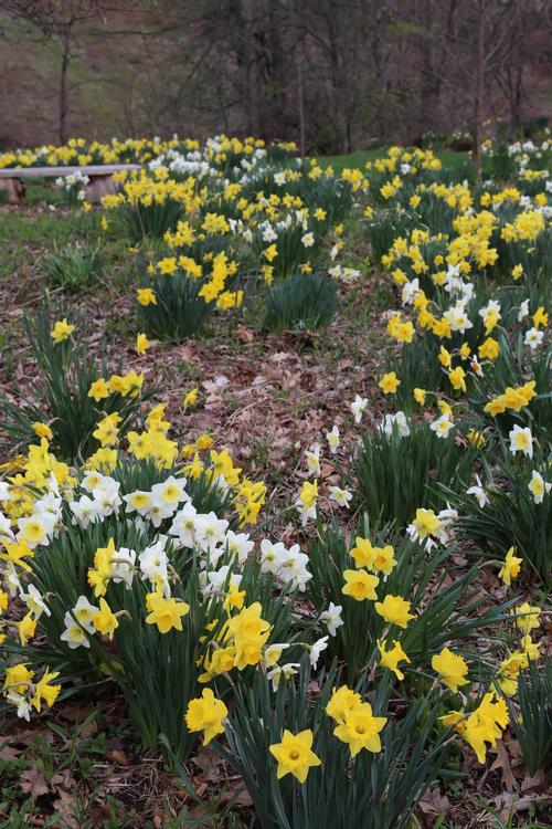 When it's time to plant the bulbs, you can plant them in drifts by variety, such as a swath of all yellow Dutch Master or all white Mount Hood. For a more informal look, you can create or purchase a mix that includes several colors such as a Trumpet Mix or Multiflowering Mix.