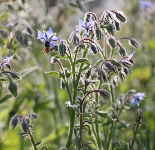 Plants in the borage family are another magnet for bees. When their flowers are in bloom, you'll find them covered with bees from dawn to dusk. At the top of this family of bee-friendly flowers is borage, followed by lungwort, forget-me-nots, heliotrope, Virginia bluebells and comfrey.