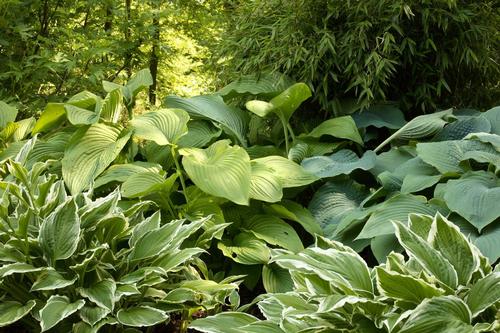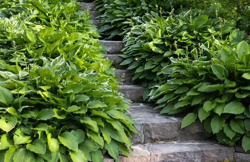 Hostas are bigger and have more personality than most ground covers. Stick with just one or two varieties if you want a simple, unified look. For a more varied, garden-like appearance, combine different heights, foliage colors and leaf textures. For small areas, there are miniature hostas that grow just 6” tall.