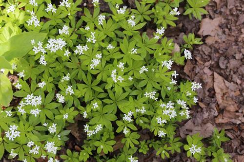 A lacey ground cover with whorls of bright green leaves and fragrant, starry white flowers in late spring. Plant sweet woodruff in moist, rich soil and full to partial shade. Once established, it spreads freely. The foliage is fragrant when crushed, especially after being dried. 5-7” tall.