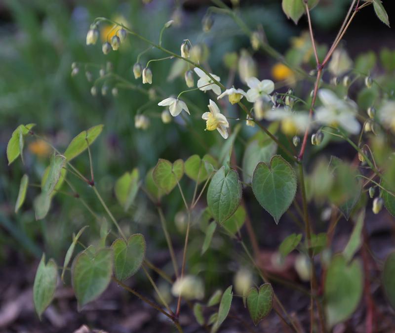 This graceful, well-mannered plant grows 12-18” tall and has heart-shaped leaves that often display attractive reddish edges early and again late in the growing season. Small flowers resembling parasols, are displayed in airy clusters. Flower colors range from white and pink to yellow and orange. Tolerates dry shade.