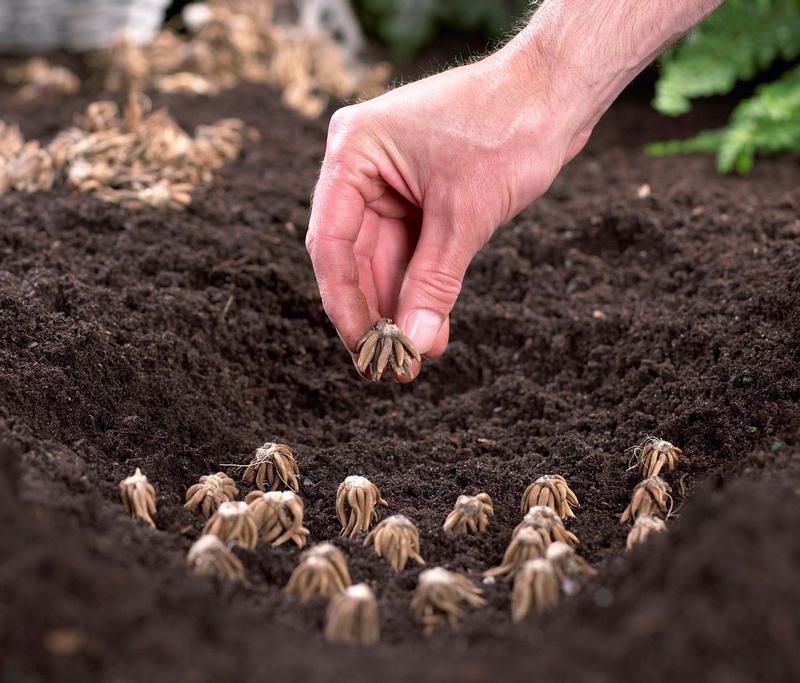 3. Before planting, it’s best to soak the corms in room temperature water for about 3 hours. Plant directly into the garden or pre-sprout the corms in a shallow tray filled with moist growing mix. Cover the corms with a thin layer of soil and keep them in a cool (50-55°F) place for 2-3 weeks. Water lightly. Once the corms have sprouted, they can be transplanted into the garden or containers.
