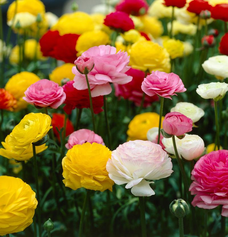 Ranunculus flower sizes range from 2” to 5” across and the long stems are ideal for cutting. If the flowers are cut before they’re fully open, they last for 10 to 12 days in a vase.