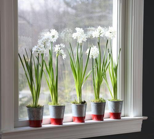 Once the paperwhites begin to sprout, you can slip the pots into decorative containers. If you wish, you can cover the soil surface with decorative moss or stones. To keep your paperwhites from getting leggy, give the bulbs lots of bright light as soon as they start to sprout. If they get leggy in spite of your best efforts, simply cut the stems and enjoy them as cut flowers. To learn more about planting and care, read: 6 Tips for Growing Paperwhites.