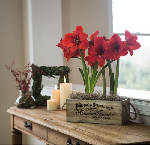 Amaryllis are also long-lasting cut flowers, so don't be afraid to cut the stems. Wait until the buds get plump and start to show color, then cut the stems to any length. Long stems are lovely on their own in a vase and can also be combined with seasonal greens.