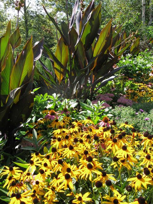 Cannas hit their stride in late summer, when most flower gardens are beginning to fade. To keep your garden colorful right through September, you can rely on cannas and late-blooming perennials such as rudbeckia, agastache, Russian sage and helenium.