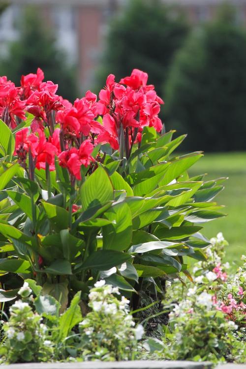While cannas always look great on their own, consider pairing them with other big and assertive plants such as elephant ears, dahlias, sunflowers, amaranth and kiss-me-over-the-garden-gate.