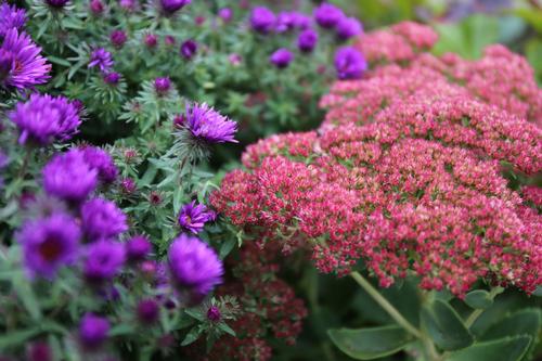 Sedums are rugged, sun-loving succulents that tolerate both heat and drought. There are many different types. Some hug the ground like a carpet, while others stand up to 3 feet tall. Sedums typically begin blooming in mid to late summer and their flowers persist for months, changing color with the seasons.