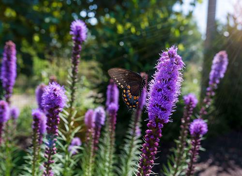 This North American native plant is also known as blazing star and gayfeather. The wand-like flowers are violet-plum and have a fuzzy texture. The plants grow from corms, and once planted, they return reliably for many years. Liatris are not fussy about soil and they never need staking. The flowers attract bees and butterflies and are excellent for cutting.