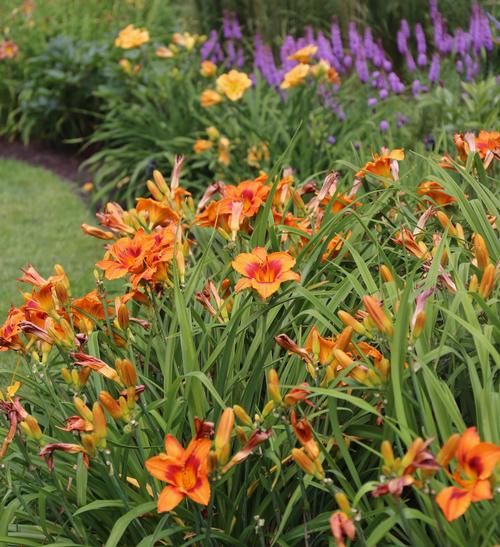 It's hard to go wrong with daylilies. These plants tolerate almost any type of soil, wet or dry. They will grow in hot sun or light shade, and flower for months. Plant breeders have introduced hundreds of daylily varieties with different plant heights and flower styles. Colors now range from almost white through yellow, orange, red, pink and purple. Daylilies are a great choice for difficult areas, yet also a beautiful addition to flower gardens.