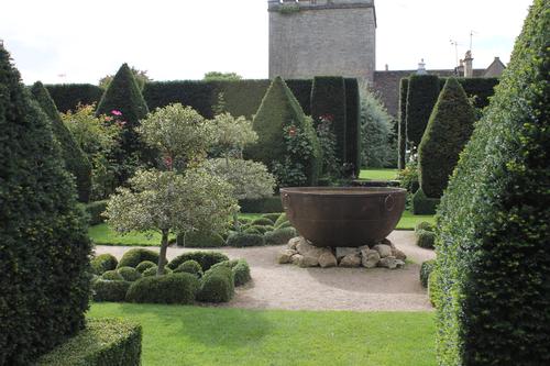 Formal gardens are characterized crisp edges and clean lines. The design may be symmetrical and often incorporates geometric shapes, such as circles, triangles and rectangles. Trees and shrubs are used to define spaces and guide the eye. Herbaceous plants are selected to create specific texture or color combinations, and are confined to neat beds and borders. Pathways are typically brick, stone or concrete. Pots, outdoor structures and furniture are classic in design and carefully placed.