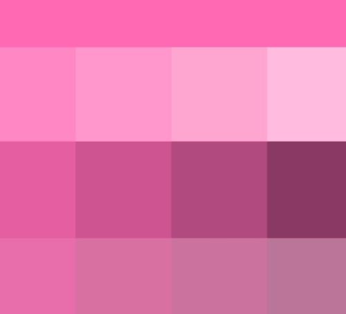 To alter this true pink hue, you can add white to get a “tint” or black to get a “shade”. Adding both black and white results in a “tone”. Tints, tones and shades are versions of the same hue. When they are used together, it's called a monochromatic color scheme.