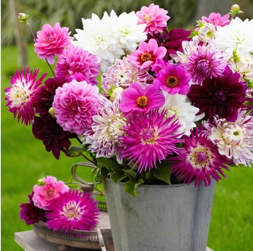 Canna, dahlias, gladiolus, hyacinths, lilies, nerine, eucomis, crinum, ranunculus, tulips.