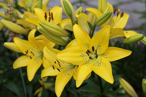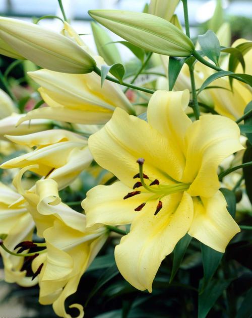 Longiflorum-Asiatic lilies are hybrid crosses between longiflorum lilies, which are the fragrant white lilies best known as Easter lilies, and Asiatic lilies. The flowers have thick, smooth petals and clear, bright colors. Most stand about 4 feet tall and have a light fragrance. Longiflorum lilies grow well warm climates, so LA hybrids are a good choice for southern gardens (though they're also hardy to zone 4). Shown at left is 'Yellow Diamond'.