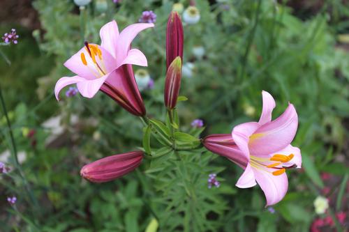 Annuals grow quickly and will make your garden look full while the perennials are getting established. Most annuals begin blooming in early summer and continue until late summer – as long as you keep them watered and fertilized, and remove the spent flowers.