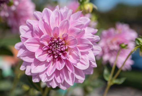 Dahlias are sun lovers and more sun usually means more blossoms. But when the sun is too hot and temperatures are too high, the plants may stop flowering. To protect your dahlias from excess heat, choose a planting location with half day rather than full day sun. Ideally, your plants would get full morning sun and filtered light in the afternoon. You can also try planting your dahlias beneath a shade tree. Overhead branches will protect the foliage from hot sun and also help reduce the air temperature.