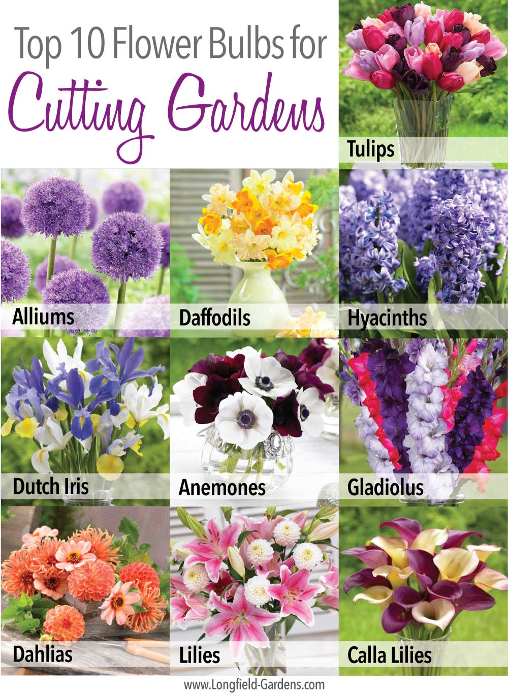 Many of the world's most popular cut flowers are grown from flower bulbs. Daffodils are loved for their early and incredibly abundant blooms. Tulips and anemones offer flower arrangers an amazing range of colors. Dahlias and glads add the wow factor with their enormous flowers. Lilies and hyacinths provide incredible fragrance. And for exciting flower shapes, it's hard to top alliums, Dutch iris and calla lilies.