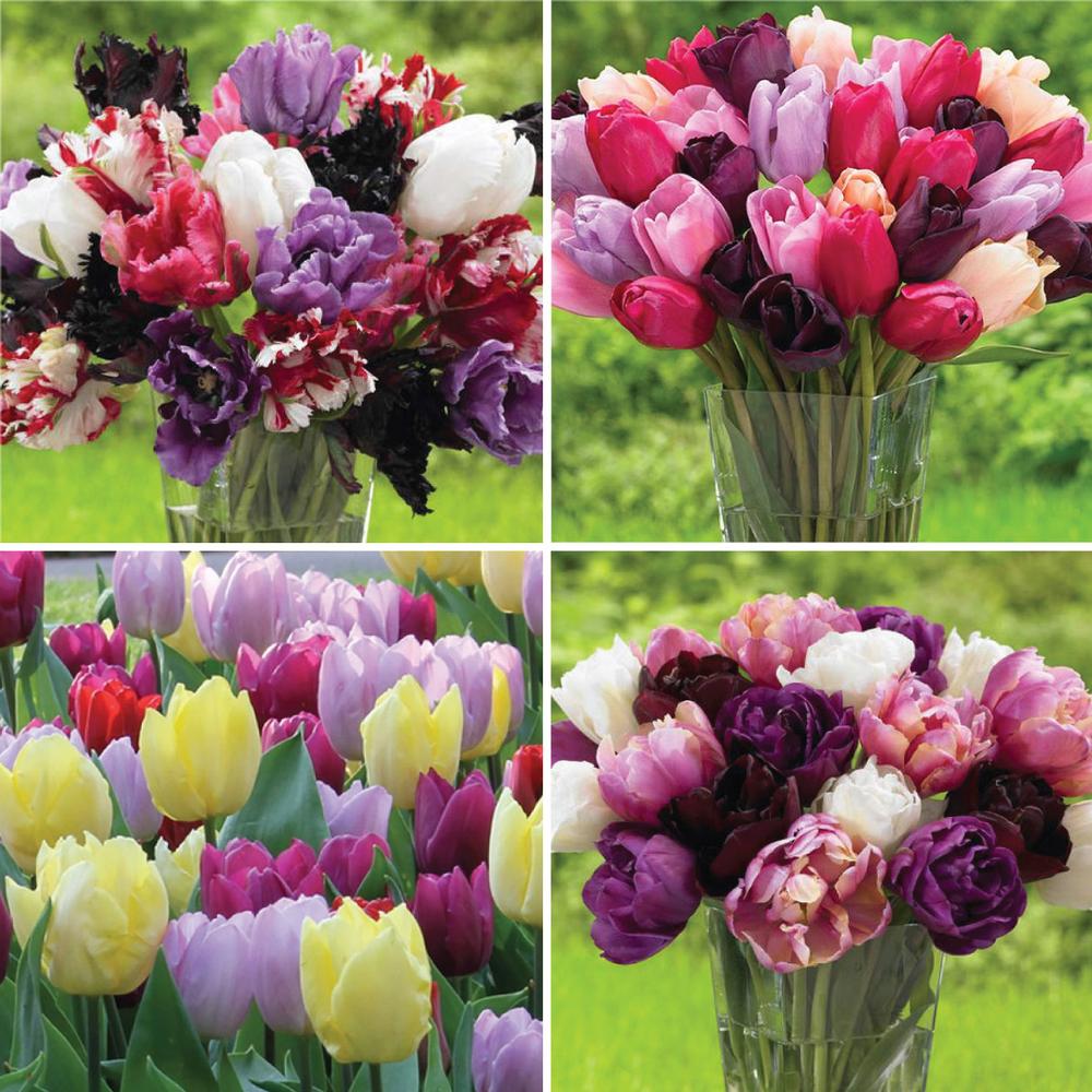 Florists love working with tulips. Their shapely blossoms and amazing colors suggest no end of creative pairings. If you love creating your own home-grown spring flower arrangements, this mix will give you a bountiful supply of blooms in a harmony of lovely hues.