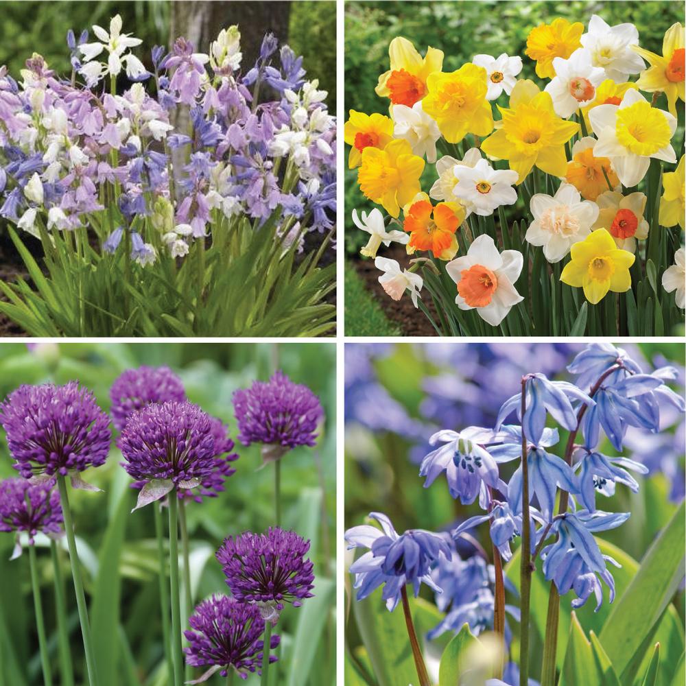 Naturalized bulbs bloom year after year with little or no care. Over time, just a few bulbs will give you hundreds of flowers. This collection includes two types of scilla as well as daffodils and alliums. All are widely adapted and deer-resistant. Ideal for planting at the edge of a woodland or in a meadow.